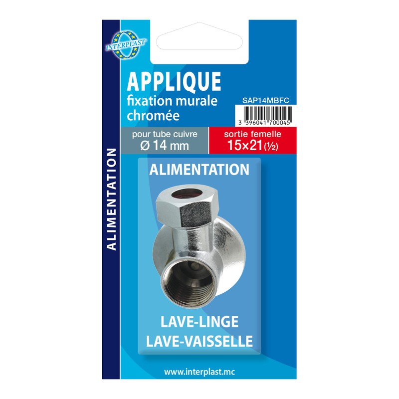 Applique murale pour machine à laver Ø14×1/2″ en blister