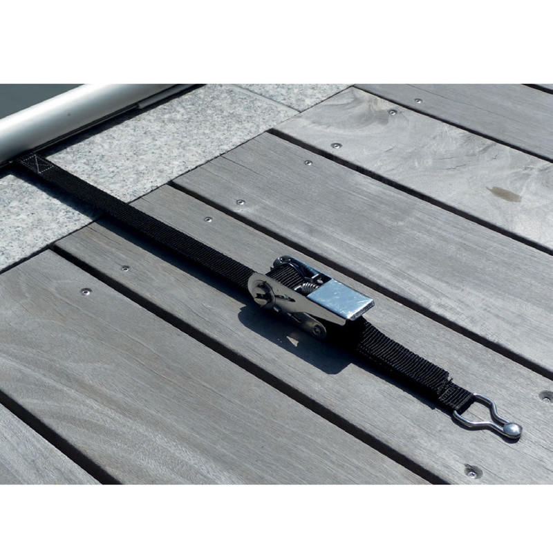 • Sangles et cliquets inox : pour la fixation et l’accrochage sur les largeurs.