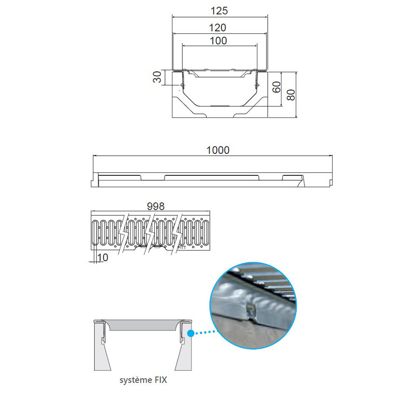 •Fente de la grille < 20 mm, adaptée pour le confort des cyclistes et les personnes à mobilité réduite = sécurité. Conforme aux décrets n° 2006-1657 et 1658 du 21/12/2006 pour l’accès des personnes à mobilité réduite. (décret français).