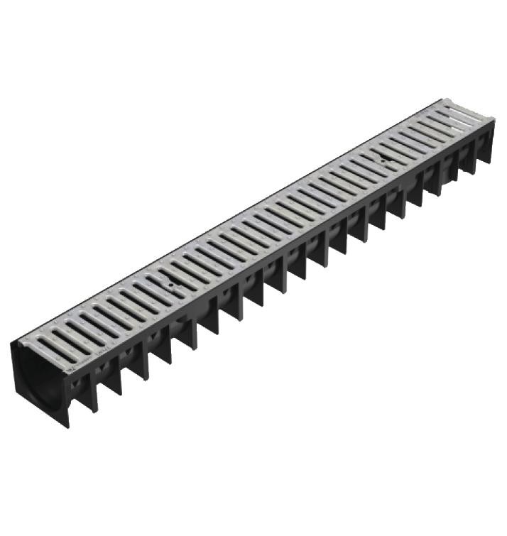Caniveaux Interlight PP avec grilles en acier galvanisé A15 Caniveaux ultra légers en polypropylène sans pente incorporée livrés avec une grille passerelle encastrée en acier ... Plus de détails