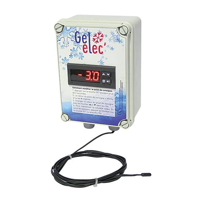 Affichage digital avec afficheur à 3 chiffres Point de consigne réglable Tension d'alimentation 230 V Livré avec presse étoupe et sonde 1.50 m (possibilité de rallonge à 15 m) Info-tri ... Plus de détails