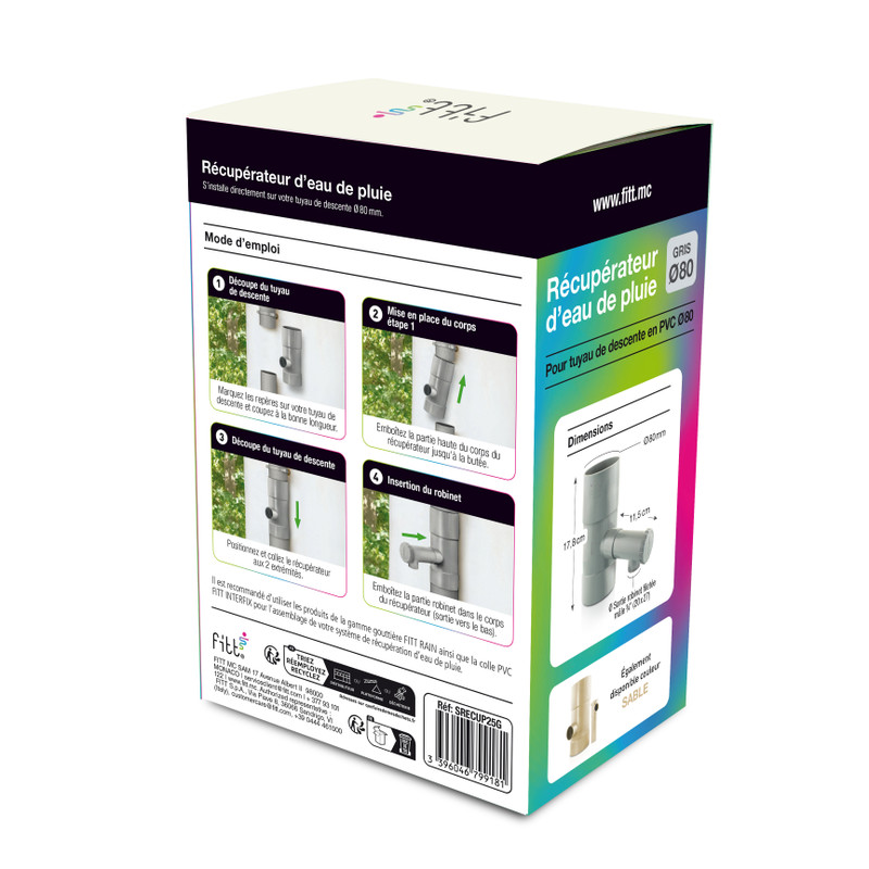 Collecteur récupérateur d’eau de pluie pour tuyau de descente Ø80