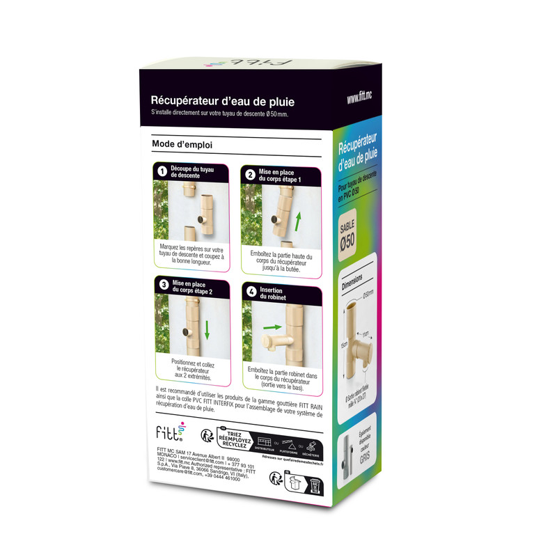 Collecteur récupérateur d'eau de pluie pour tuyau de descente Ø50 En cas de pluie, l’eau s’écoule sur les parois du tuyau de descente pour être en partie dirigée vers le robinet ; si les ... Plus de détails