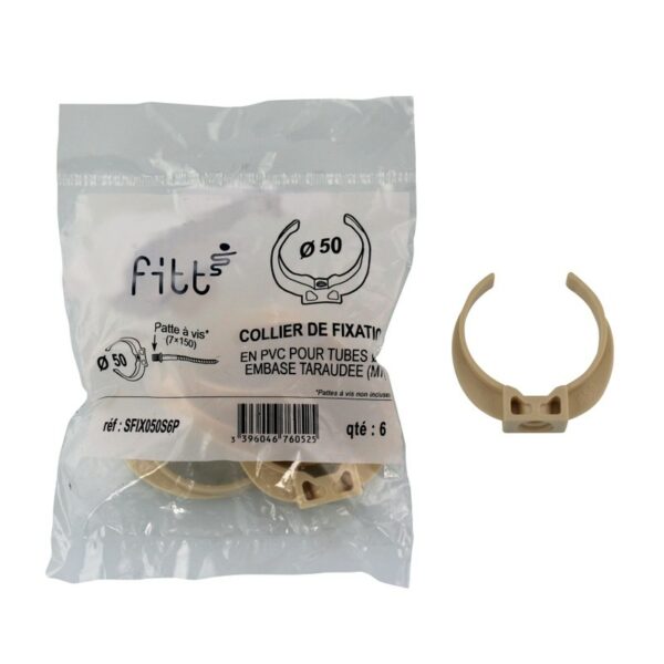 Collier de fixation à vis pour tube de descente Ø80 sable en sachet 5pcs