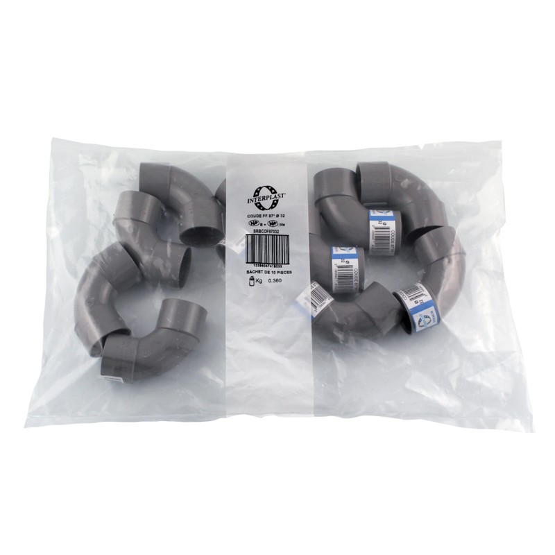 Coude PVC évacuation 87° femelle/femelle par sachet 10pcs