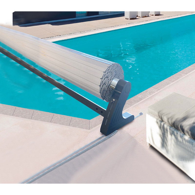 Enrouleur hors-sol motorisé sur rail avec ou sans fin de course électronique pour bassin de 6x12m maximum