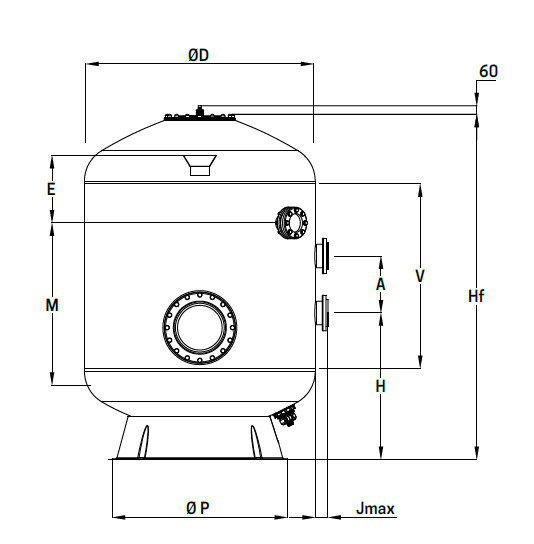 • Trou d’homme polyester et stratifié Ø 400 ou Ø 500 sur virole ou fond bombé* (*pour filtre > Ø 2000mm) avec couvercle gel coaté ou PMMA et joint torique.