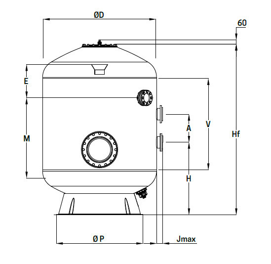 • Trou d’homme polyester et stratifié Ø 400 ou Ø 500 sur virole ou fond bombé* (*pour filtre > Ø 2000mm) avec couvercle gel coaté ou PMMA et joint torique.
