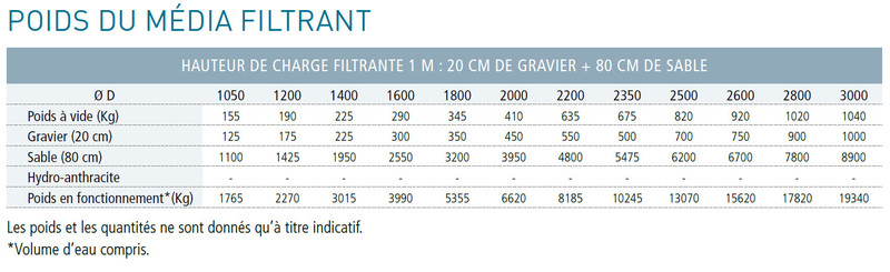 Débit indicatif : de 25 à 353 m3/h selon diamètre des filtres et vitesse de filtration.