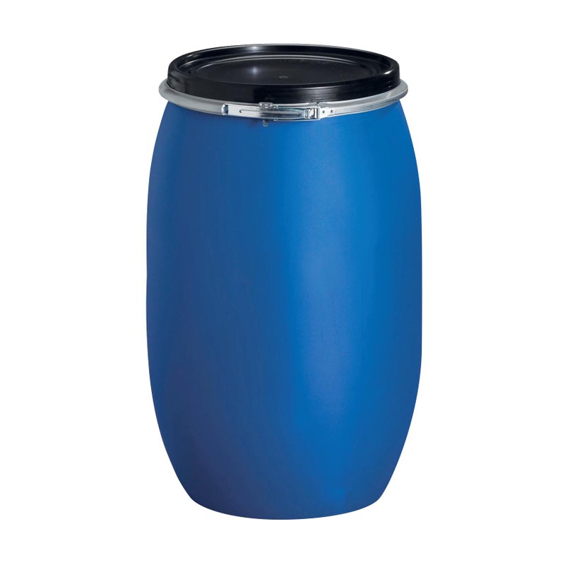 Fût PEHD bleu à couvercle qualité alimentaire