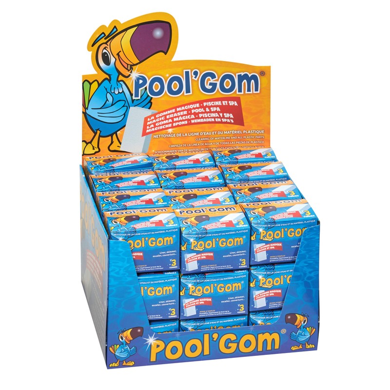 Utilisée sans aucun détergent ni substance chimique, la gomme Pool’Gom® permet d’éliminer par gommage toutes les traces et tâches incrustées dans les matières plastiques au niveau de la ligne d’eau. Elle est aussi utilisée pour tous les articles en plastique : skimmers, spas, volets, couvertures rigides, escaliers, mobilier de jardin… Elle est réalisée à partir de mousse plastique souple malléable et durcissante en surface lorsqu’elle est humidifiée.