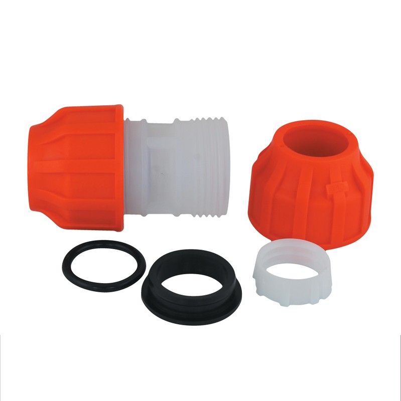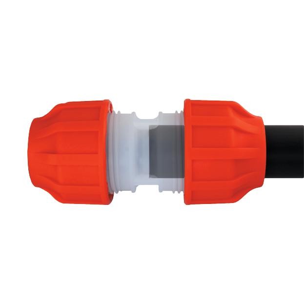 Raccords compression PN16 bars en polypropylène pour tuyaux polyéthylène haute et basse densité.