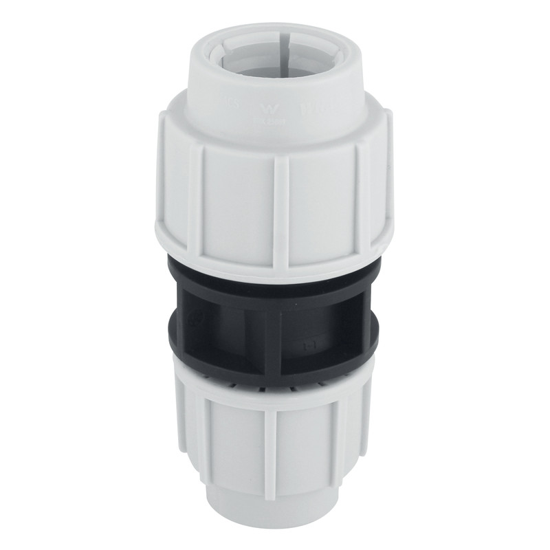 Raccords compression PN16 bars en polypropylène pour tuyaux polyéthylène haute et basse densité.
