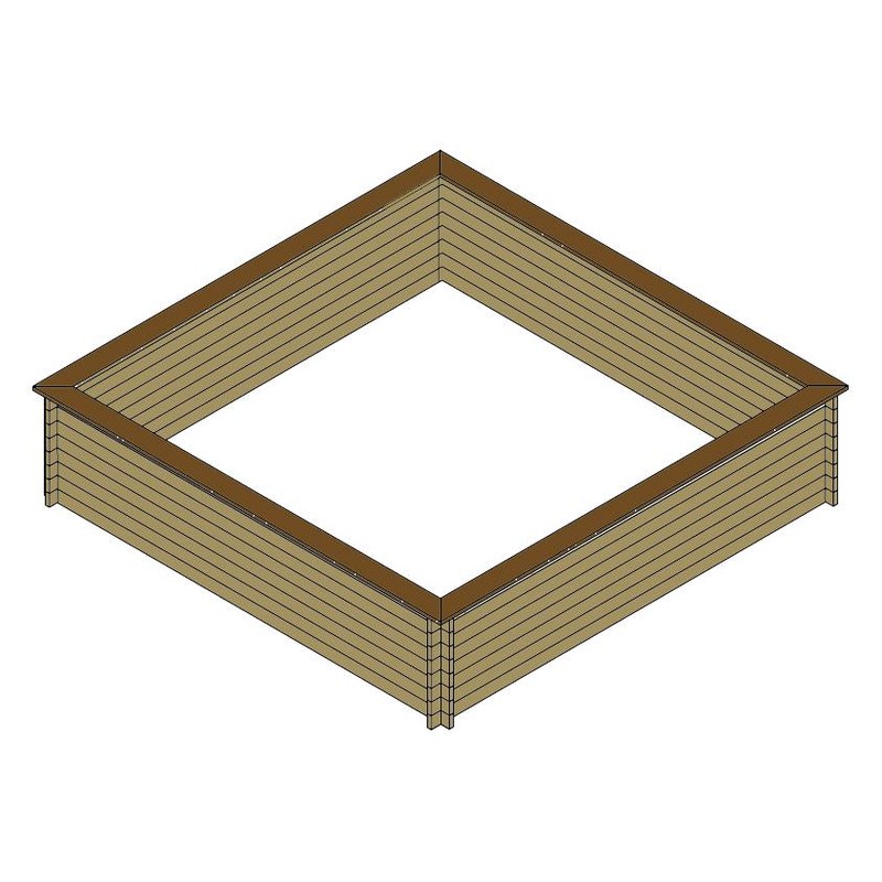 Madrier épaisseur 50 mm Assemblage sur la longueur : double « rainure – languette », Assemblage sur les angles : encoche mi-bois
