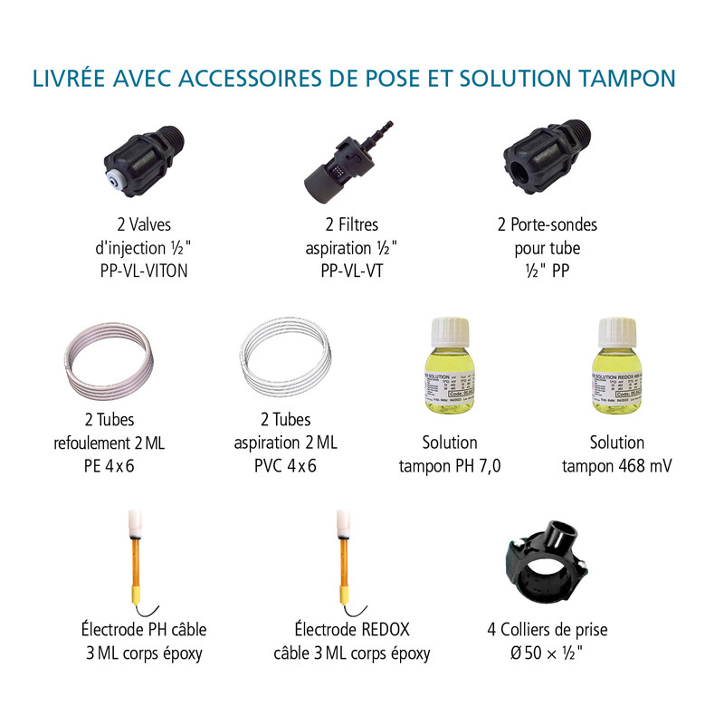 Livré complet avec accessoires de pose et solution tampon :