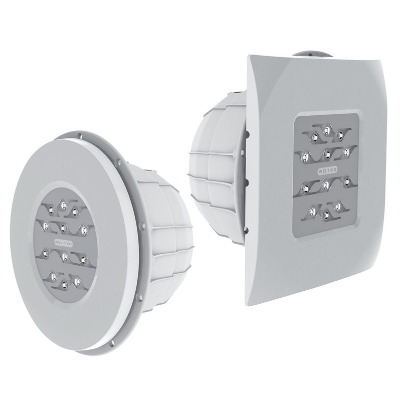 Projecteur LED gamme Design livré avec câble de 2,5m, passe-câbles et 2 enjoliveurs : 1 rond et 1 carré