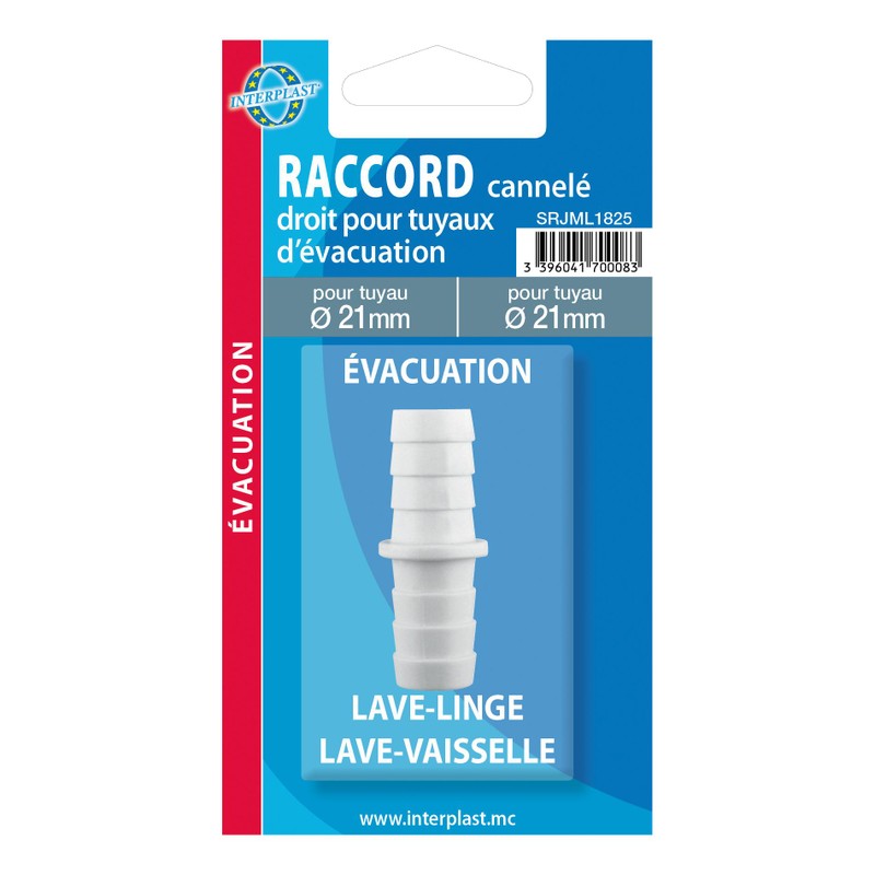 Raccord cannelé droit pour flexible d’évacuation machine à laver Ø21